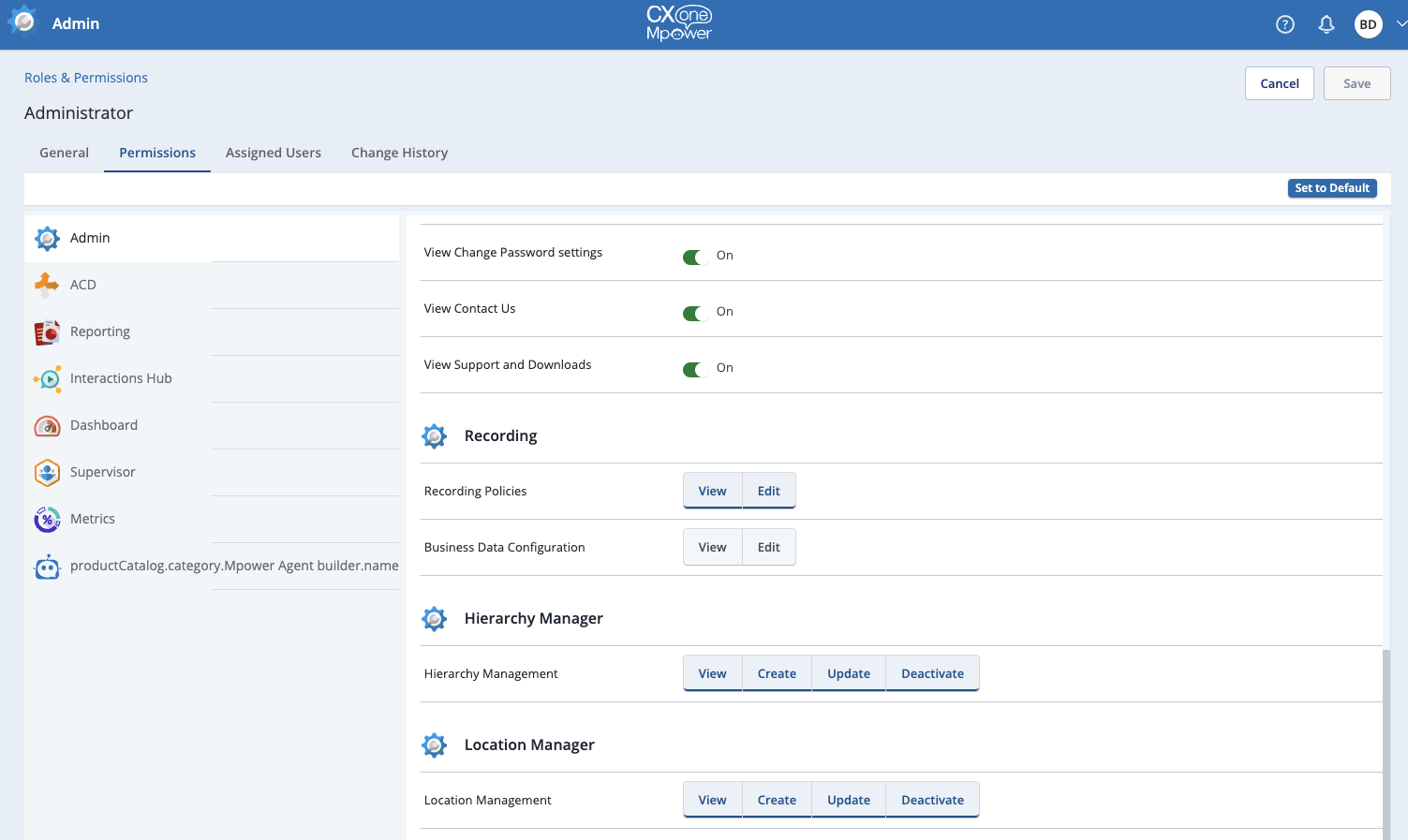 - Admin access in NICE CXone to manage Skills, Roles/Permissions, Recording Policy, Interactions Hub, and users.