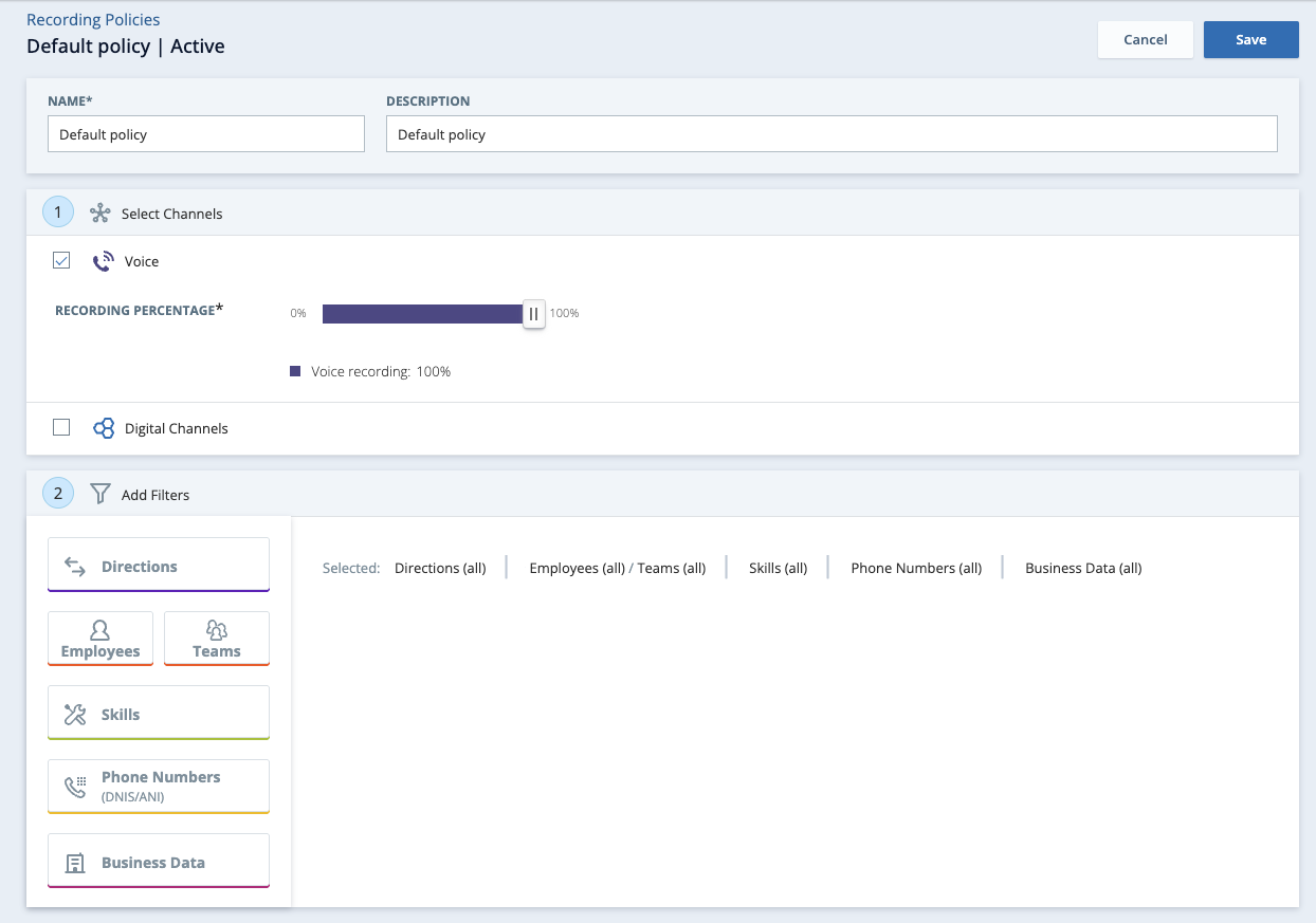 - No recordings appear: Verify the Recording Policy is enabled and the user making the call has a role with the policy active.