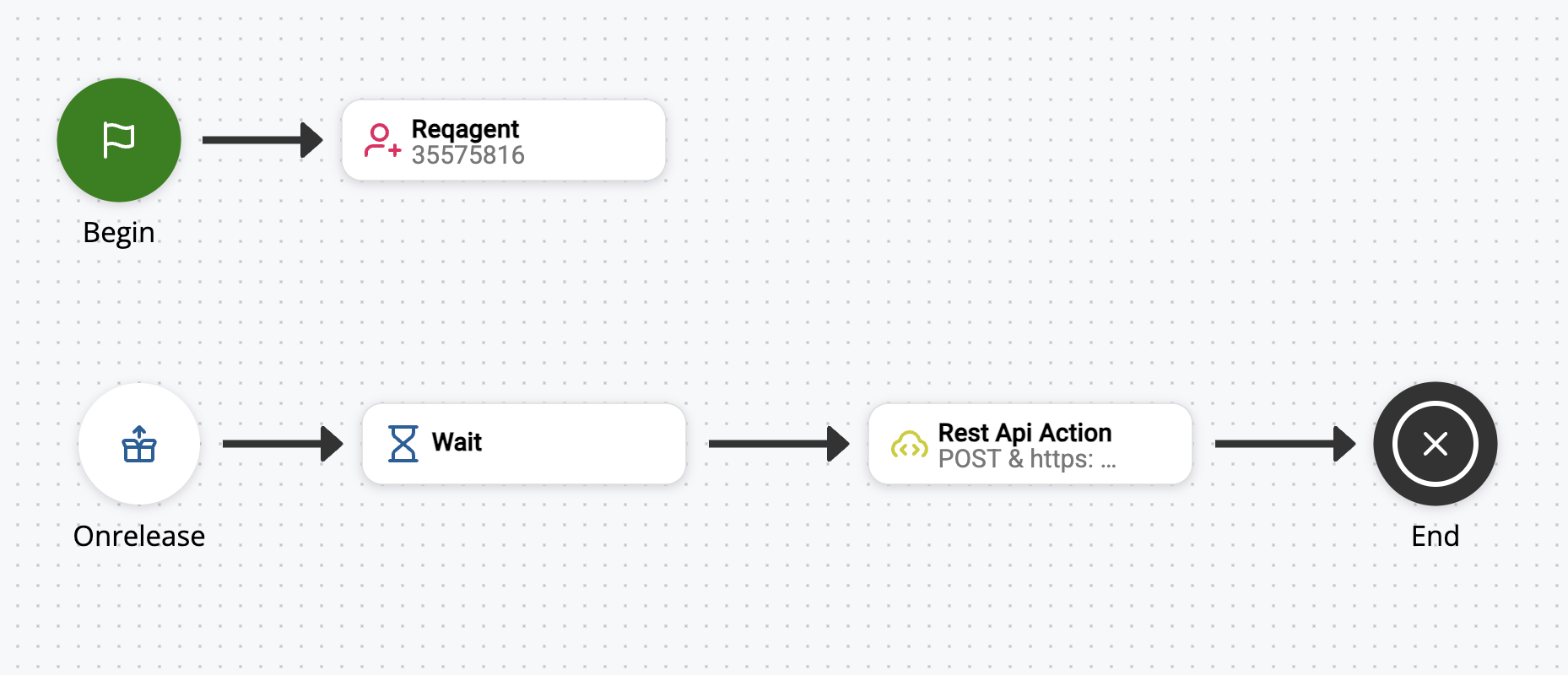 - Add Begin → Reqagent and set the Skill. Connect Begin → Reqagent.