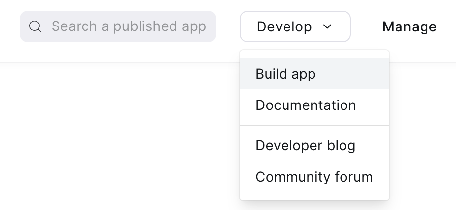 In App Marketplace, click "Develop" then "Build app" in the top right.
