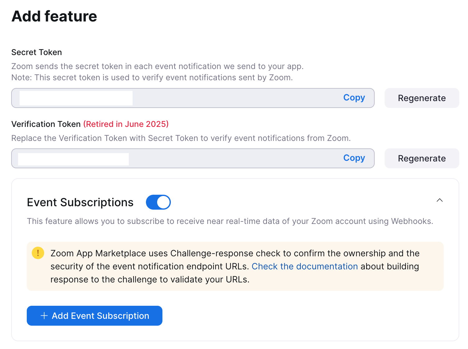 The current integration requires that your Zoom account administrator sets up an internal Zoom app to send webhook events to Genfin.