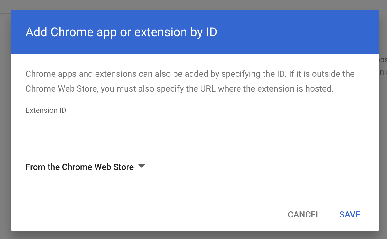 You need to decide on the distribution before installing the extension. For instance, if you decide on two individuals, you will need to walk through these instructions twice, once for each of them. If you decide on a group, you only need to walk through these instructions one time. If you choose your entire organization, the extension will be installed and running in the background on every user's browser.