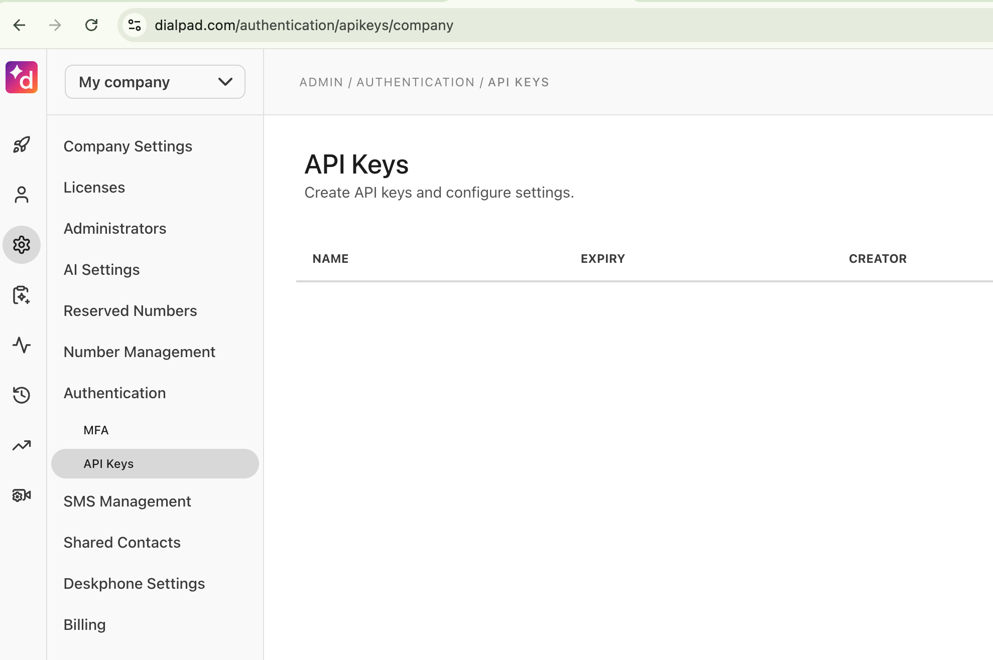 Sign into your Dialpad account and ensure it has API access (Pro or Enterprise accounts).